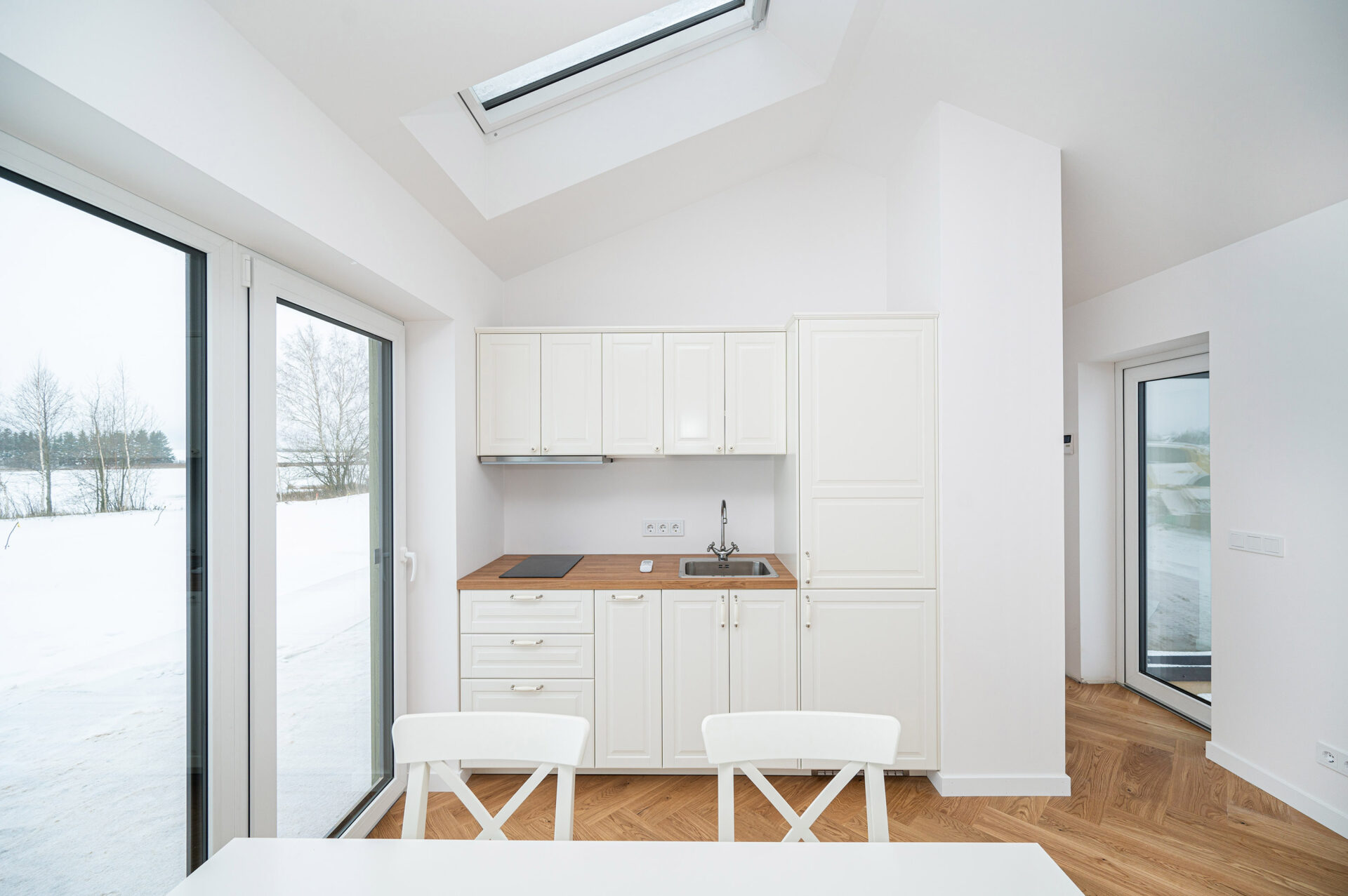Uždarame poilsio miestelyje rasite vieno ir dviejų aukštų namus su pilna apdaila. Juose galėsite ilsėtis iš karto ir nebereikės rūpintis jų įrengimu. Skandinaviškos architektūros modernizmas nuosekliai išlaikomas ir interjere, todėl patiks šiuolaikiškiems ir patogiai ilsėtis norintiems gyventojams.